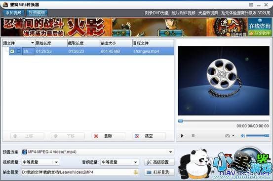 MP4转换器的使用界面