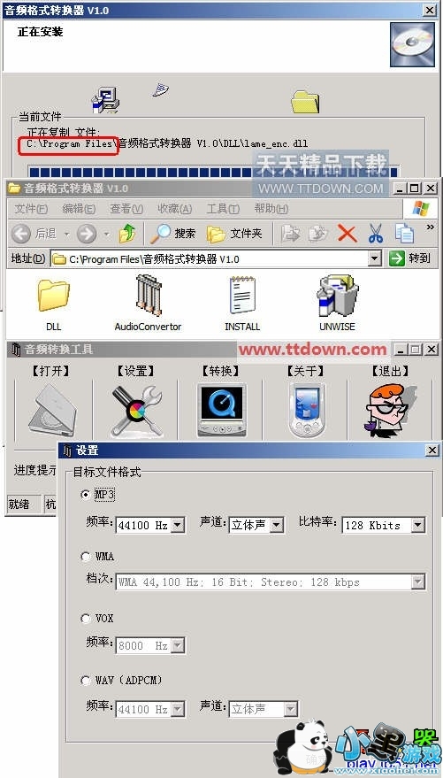 软件安装时不允许选择目标路径,会自动安装到“C:/Program Files/音频格式转换器 V1.0”。