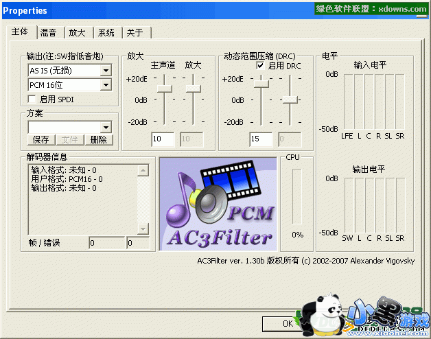 directshow过滤器:AC3Filter 是一个用来回放多媒体文件的高质量 DirectShow 音频解码及处理过滤器,可以被绝大多数多媒体播放器自动调用。通过这个软件,你可以播放 AVI 容器或其它容器,比如 MKV 中的 AC3 和 DTS 音轨,同时这个软件还支持 DVD 播放。除了支持在电脑上直接解码播放外,还可以通过 SPDIF 把音频流传输到外置解码器解码播放。