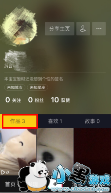 2.在我的界面点击“作品”,选择自己要查看评论的作品;