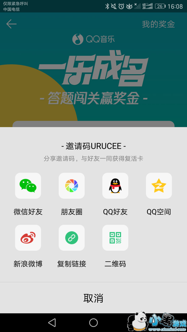 QQ音乐《一乐成名》同样设置了“复活卡”机制。活动开始前将复活卡分享给好友,或邀请好友填写邀请码,当好友领取成功后,双方都将获得一张复活卡。回答错误时,可点击使用生命卡复活继续参与答题(每期答题节目最多使用3次复活卡且无法在最后一题使用)