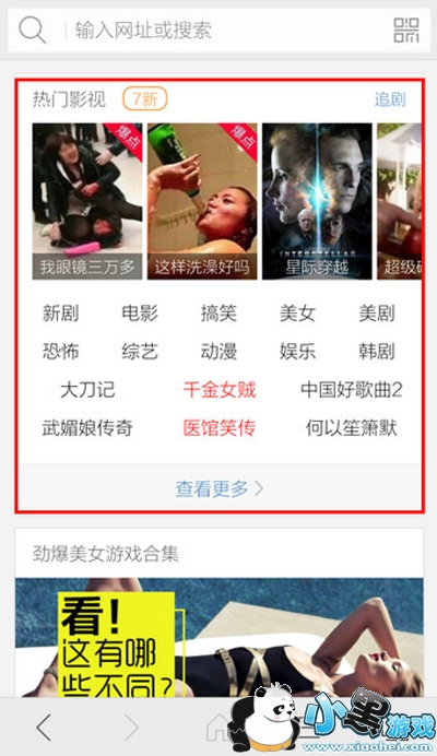 1.打开猎豹手机浏览器,滑动找到【热门影视】;