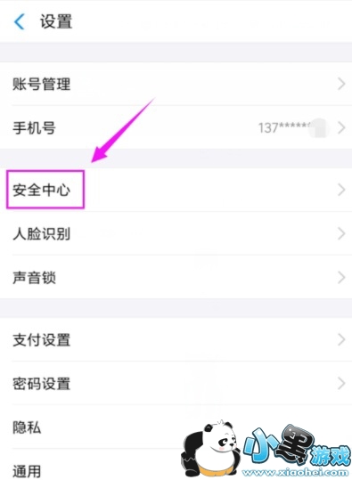 3.在支付宝【设置】这,我们接着点下【安全中心】,如图。