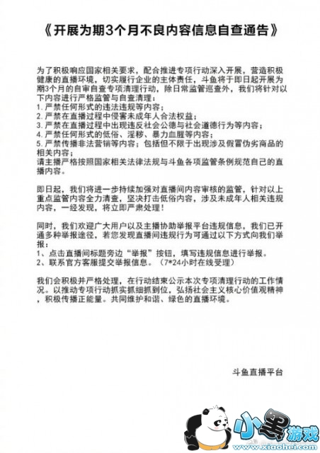 根据斗鱼官方的说法,从4月13日起,将开展持续3个月的不良内容信息自查行动,以此来营造更健康的直播环境,而主要的审查点如下所示: