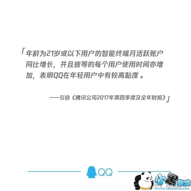 当前,95后和00后用户正在成为互联网的核心。而QQ平台依然牢牢的聚集了国内的年轻人。根据腾讯发布的2017年第四季度财报显示,QQ依然是年轻用户的重度社交阵地。
