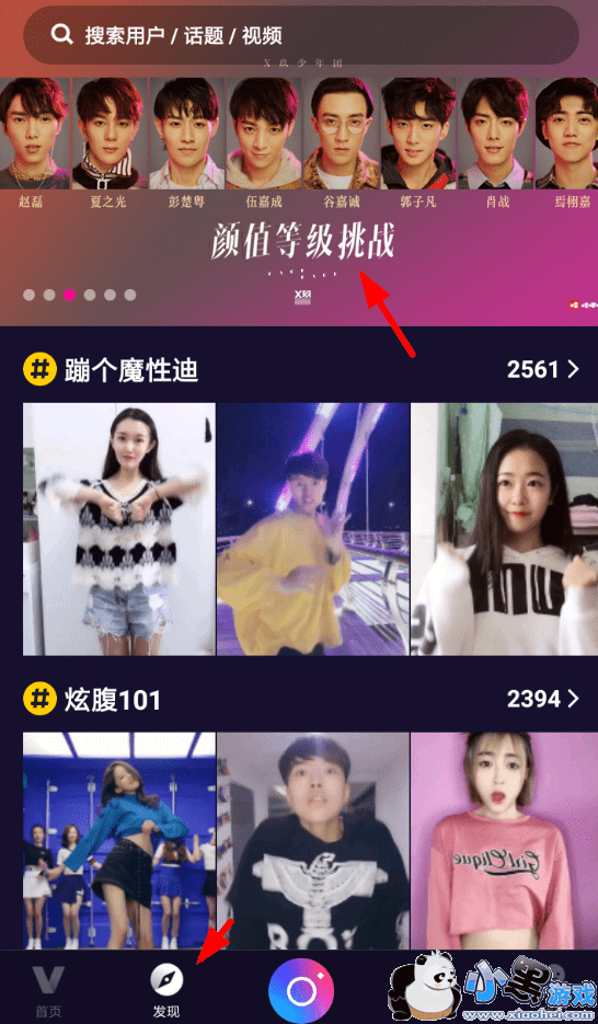 1、如果喜欢玩腾讯微视的的朋友来说,如果想要参加颜值等级挑战活动,那么就需要点击进入“发现”页面里,选择上方“颜值等级挑战”活动横幅。