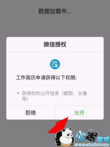 2.打开“工作简历”,出现授权页面。点击“允许”。