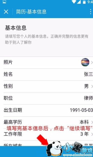 5.第一步,填写基本信息,主要包括:真实姓名、职位、学历、工作年限等。填写完成后,点击“继续填写”。第二步:填写联系方式,完成后点击“继续填写”。
