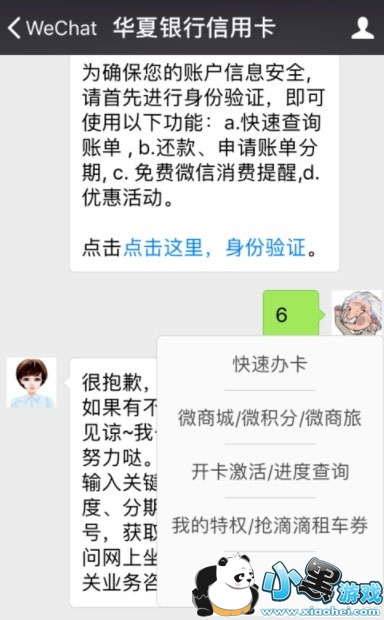 1.手机微信关注“华夏银行信用卡”。