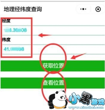 4.进入【地理经纬位置查询】小程序界面后,点击【获取位置】即可获取所在位置的经纬度。
