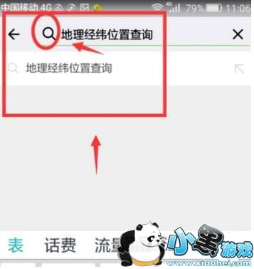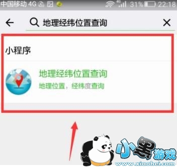 2.进入微信小程序后,在小程序搜索栏里输入【地理经纬位置查询】,并点击查询