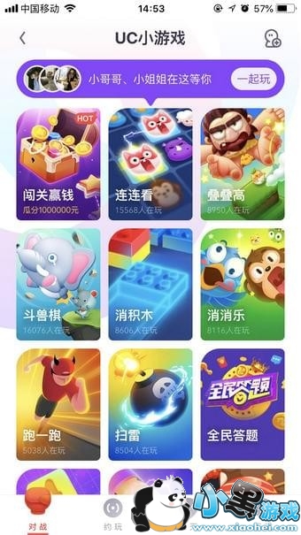 然后进入首页,可以看到左上角就有UC小游戏的logo,点击进入