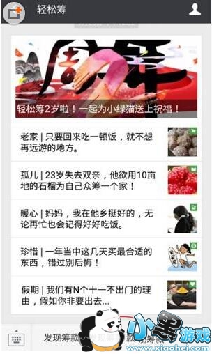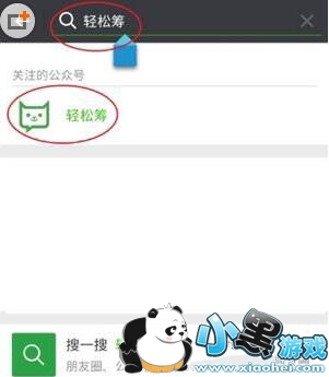 首先,打开微信界面,点击上面的搜索标志,输入轻松筹,搜到轻松筹公众号,打开,然后关注。