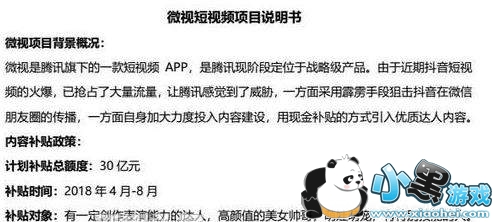根据《微视短视频项目说明书》,腾讯将拿出30亿补贴微视项目,补贴时间为今年4月至8月。