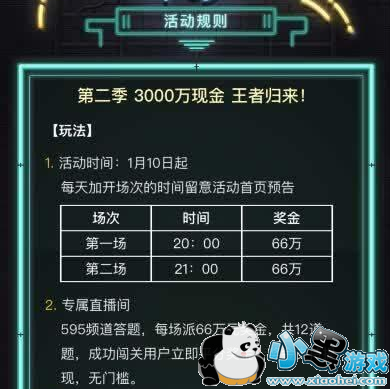yy拜托了大脑每天晚上8点,准时开始。12道单项选择题,全部答对的所有人,平分本场的奖金。每场奖金从几万元到几千万元不等,以当天的预告为准。