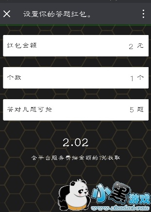 设置你的答题红包,设置红包数、金额以及答对几题可以抢红包