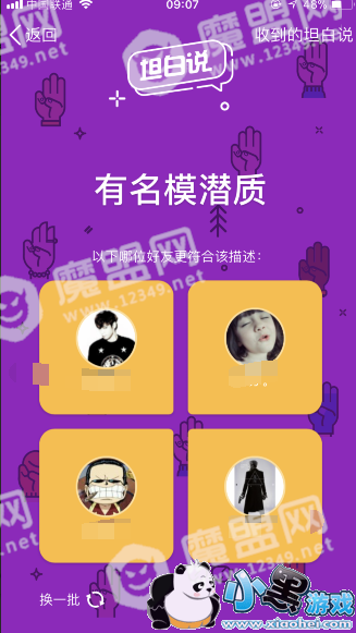其实,QQ坦白说并不能给好友发消息,只能根据系统提示的词汇来形容好友,然后切换到下一题,就是这么简单,寻找一个你想要坦白说的好友,让他猜猜是谁形容的他。