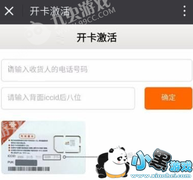 2.接下来您就可以进入到开卡激活界面,输入您的电话号码,背面iccid后八位,点击确认后就可以激活了哦。