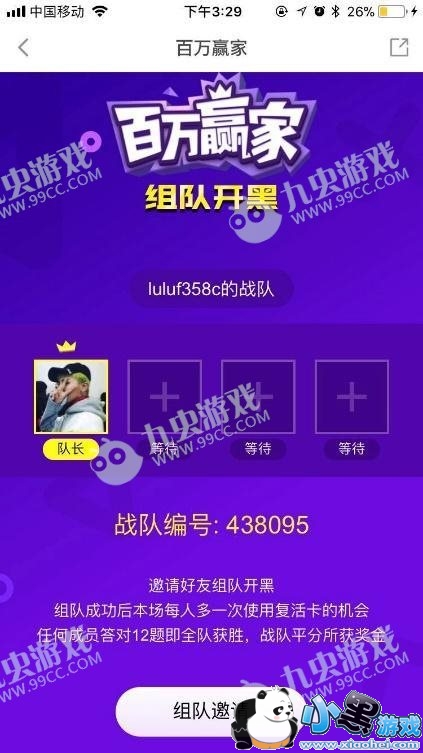 在开启“组队开黑”模式之前,首先需要在答题前就创建四人答题战队。如果你是战队队长,则需邀请3个好友来加入你的战队。