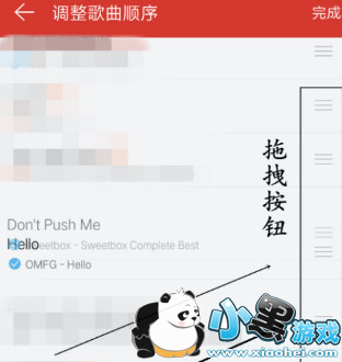 5、除了第一种排序方式外,其余三种方式都是选择后、系统自动排序!点击选择“手动排序”可以根据自己对歌曲的喜欢程度排序,点击右侧的拖动按钮,即可拖拽歌曲排序,如图所示。