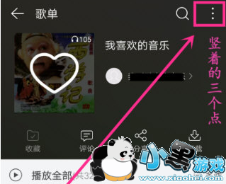 2、进入歌单后,再点击右上角菜单“竖着的三个点”,如图所示,