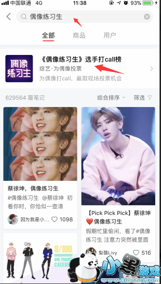 2、点击最顶端的“《偶像练习生》小红书打call榜”
