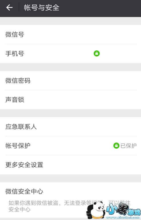 3.点击账号与安全,进入到账号也安全页面,这里显示着微信号、手机号、微信密码、声音锁等功能,如图