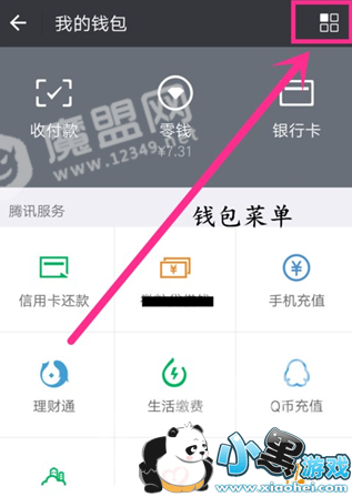 2、然后在我的钱包页面,点击进入右上角“钱包菜单”,进入支付中心,如图所示;