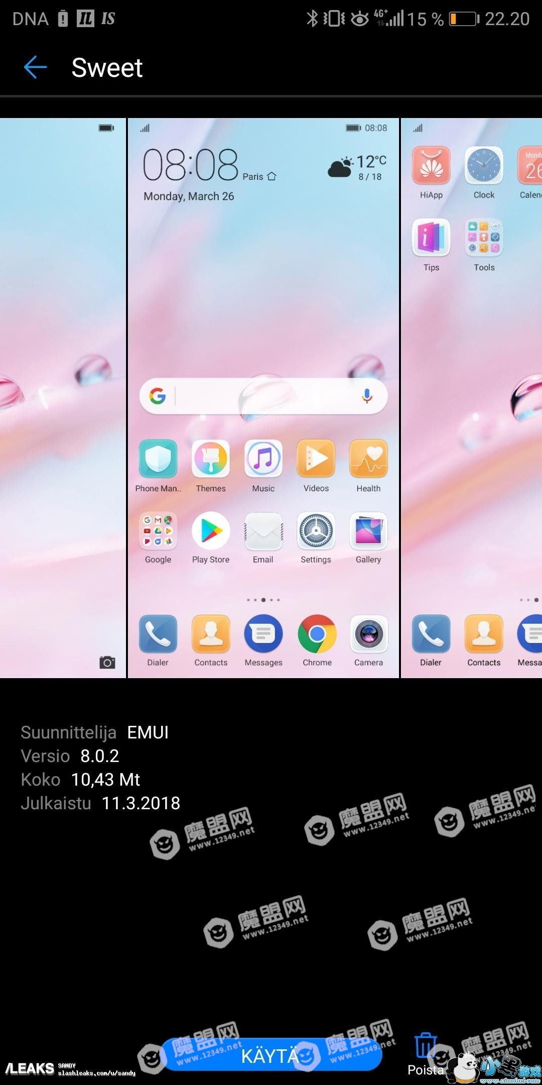 近日,Slashleaks放出了华为P20系列的系统主题,从中可以看到华为最新的EMUI对刘海屏手机做出的适配和调整,一个最明显的地方就是将信号栏移到了左上角。因此,这款华为nova 3e也很有可能采用这套交互。