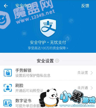 7、再次回到设置的页面,选择安全中心按钮,选择指纹/手势解锁的按钮,通过设置各种手势密码来确定自己在支付当前付款中自由跳到的界面,这样最大程度可以防止被盗