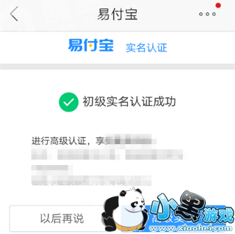 你可以看看你的易付宝服务协议,输入验证码,看完点击同意协议并实名。此时只是完成初级实名认证。