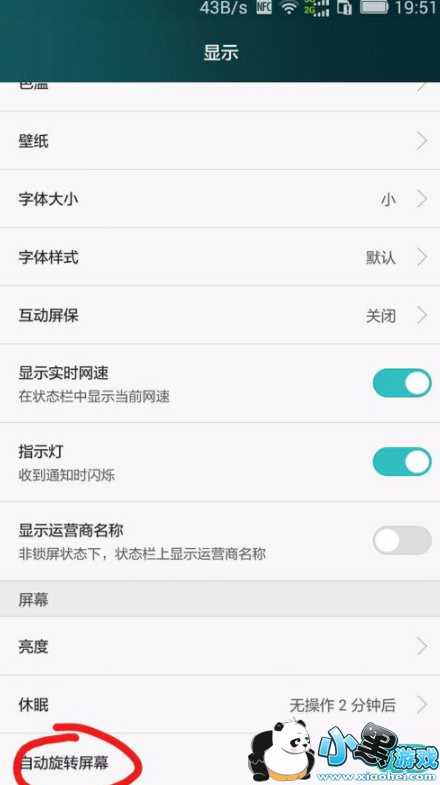 4.最后开启自己手机里自动转换屏幕的功能,比如我的就在“显示”的“屏幕”里