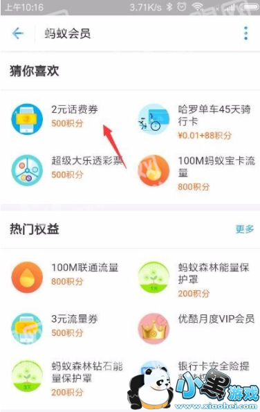 3.查看自己的积分,满500积分就可以兑换2元话费券了