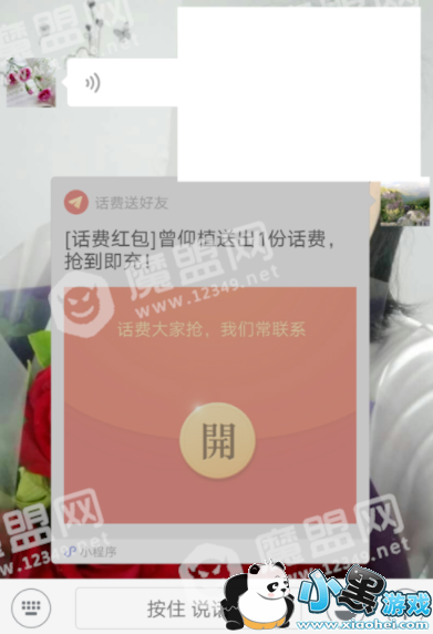 8.与好友的聊天界面就会显示话费红包了,打开就能领取,如图
