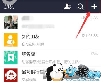 点击朋友之后,出来如下界面,我们再点击右上角的加号。