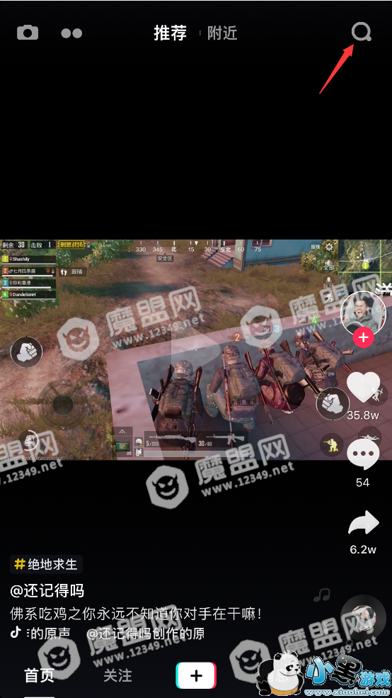 1、第一步我们需要找好音乐,我们在首页的右上角点击搜索