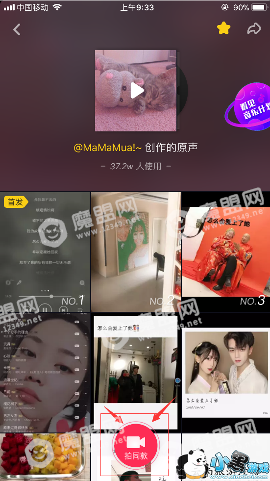 3、放弃前三个,因为前三个都是自己唱的,第四个以后,我们会看到有很多人用一个声音的,点击右下角的音乐