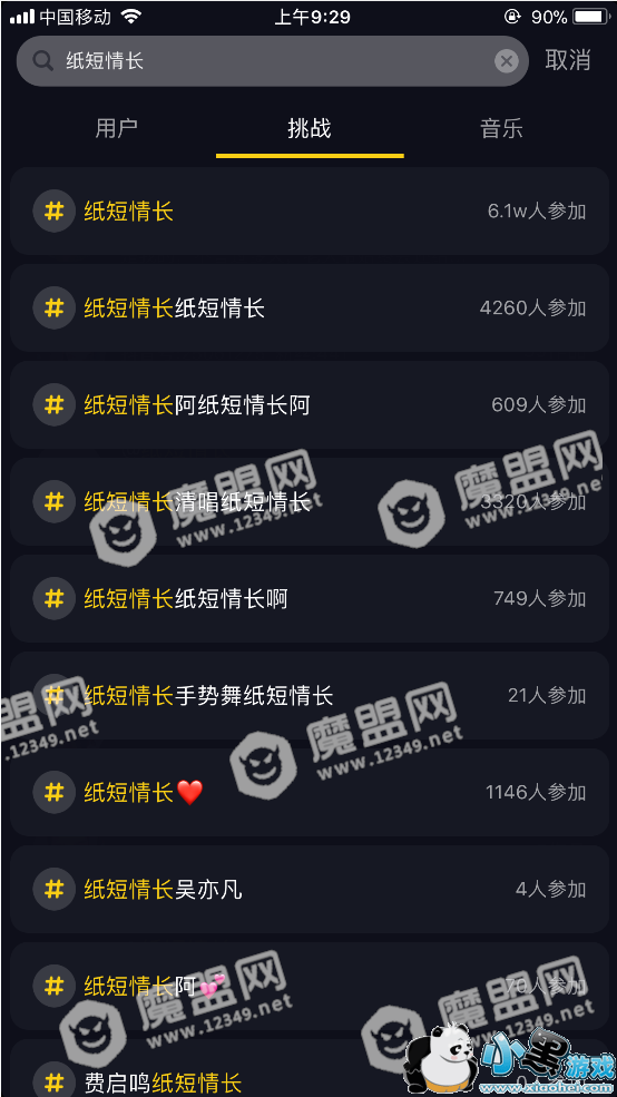 2、搜索纸短情长,选择挑战,会看到有个最多的6.1万参加的