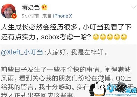 4月17号,XDD小叮当发微博向前女友道歉并会退还其为小叮当刷的礼物7万人民币。该条微博受到广大网友点赞,其中就有主播毒奶色,其更是坦言“小伙子我看你骨骼精奇,我这里有一本葵花宝典,要不要学?”就是赞扬了一番,结果当天晚上小叮当直播过程中,收到了来自己Steam的邮件,账号被封禁。