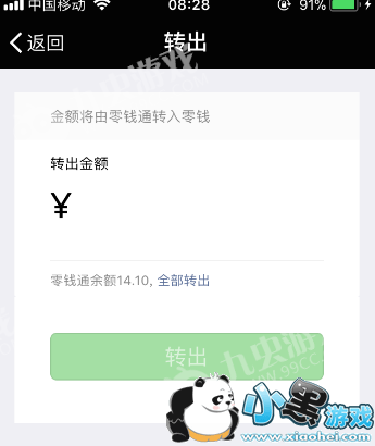 5.接着在“转出”页面输入需要转出的金额,然后点击转出按键。