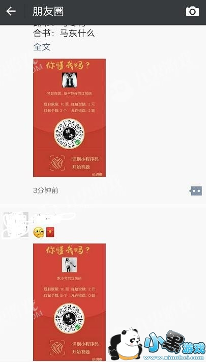 2、完成答题之后,再把这五道题目分享到朋友圈之中,让其它朋友根据自身对你的了解去回答问题。