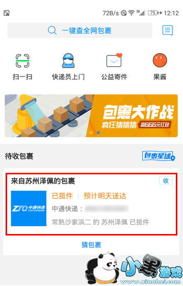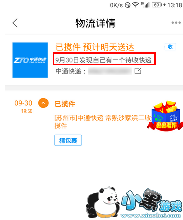 3.登录之后,如果当前你有待收货的快递单,则会在主界面上显示出来。我们点击这个快递单进入,便可以看到物流详情。