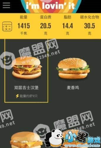 4.此外,用户还可以查询麦当劳食物的热量,操作如下: