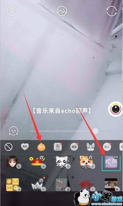 在界面下方就出现了好多漂亮的效果,点击“热门”类,找到“控雨”点击,第一次点击会先进行下载。