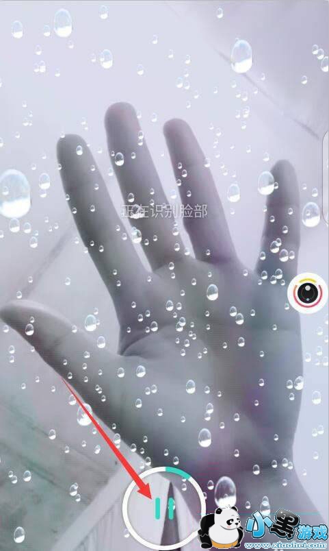 点击下方蓝色大圆按钮开始录制,把手掌撑开,屏幕对着手掌,识别到后雨丝就会变成水珠了,稍微晃动手掌,水珠就会跟着轻微摇动。