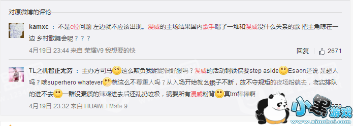 于是广大的漫威迷们坐不住了,这本来是就是一场漫威十周年的庆典,请了和主题无关的明星来商演也就算了,还挤走了我们漫威英雄们的C位?于是网上就此展开了一场大骂战。