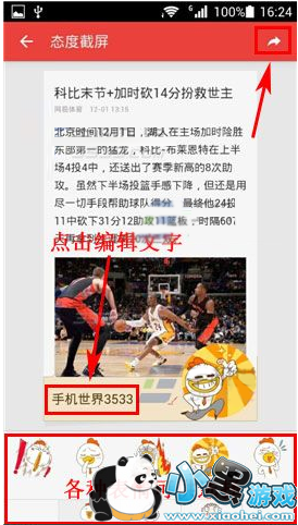 2、接着你可以在截屏上添加文字和表情表达自己的态度和看法