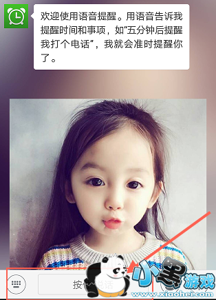 3、这时打开了聊天界面,按住语音按钮,说一个提醒事情,比如来了红包提醒;