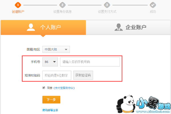 3、填写账户基本信息【账户注册成功则默认为手机注册账户,账户绑定此手机号】
