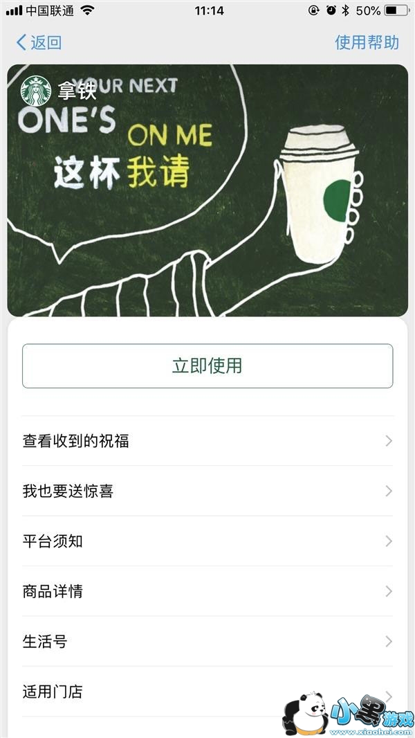 同时卡片还配有“查看收到的祝福”、“我也要送惊喜”、“商品详情”等功能。“适用门店”可根据地理位置距离,为消费者择优推荐附近的星吧咖门店。